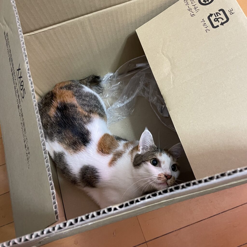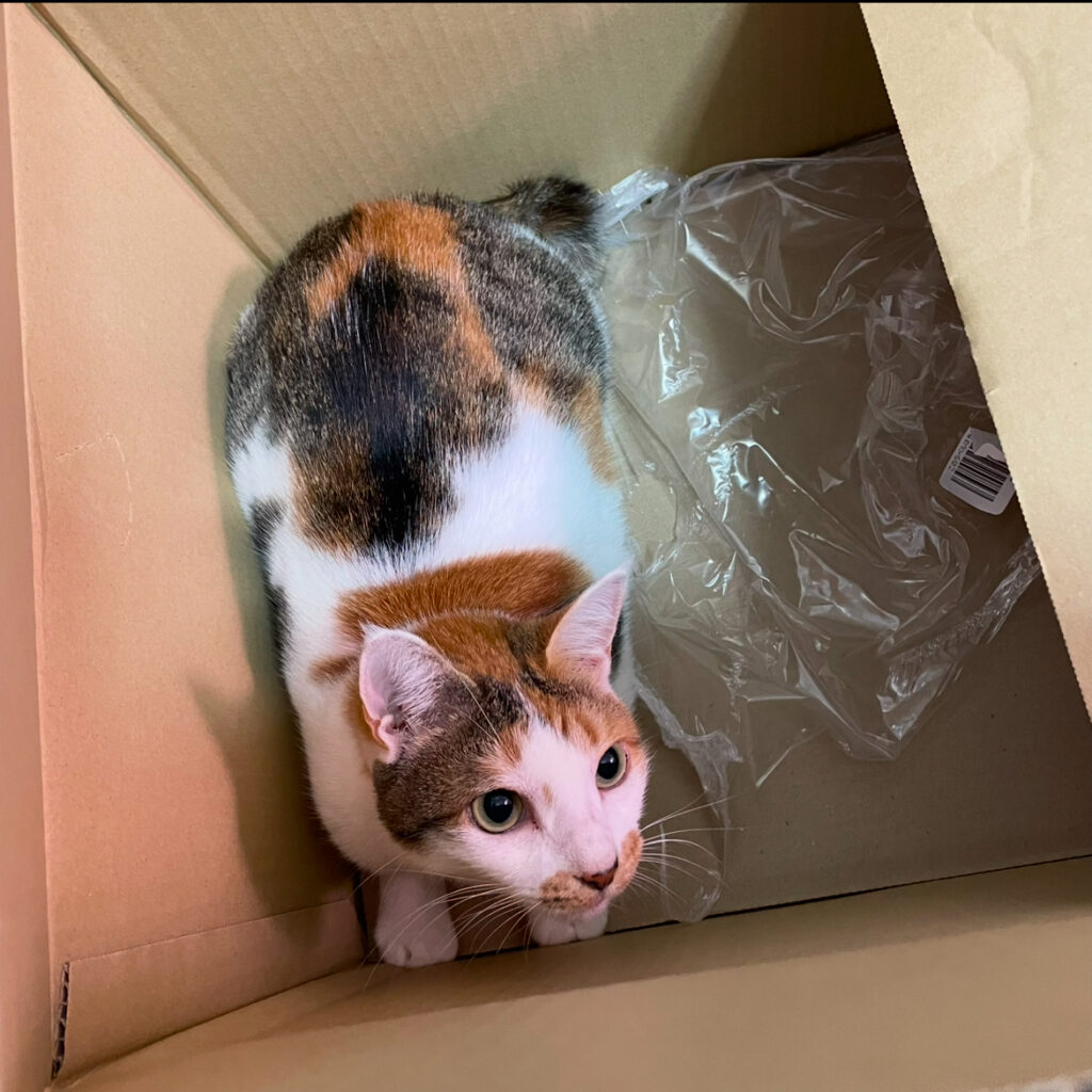 The other day, I left an empty snack box out, planning to flatten and throw it away later. When I looked back, Latte had squeezed herself perfectly into it, and I couldn’t help but laugh.