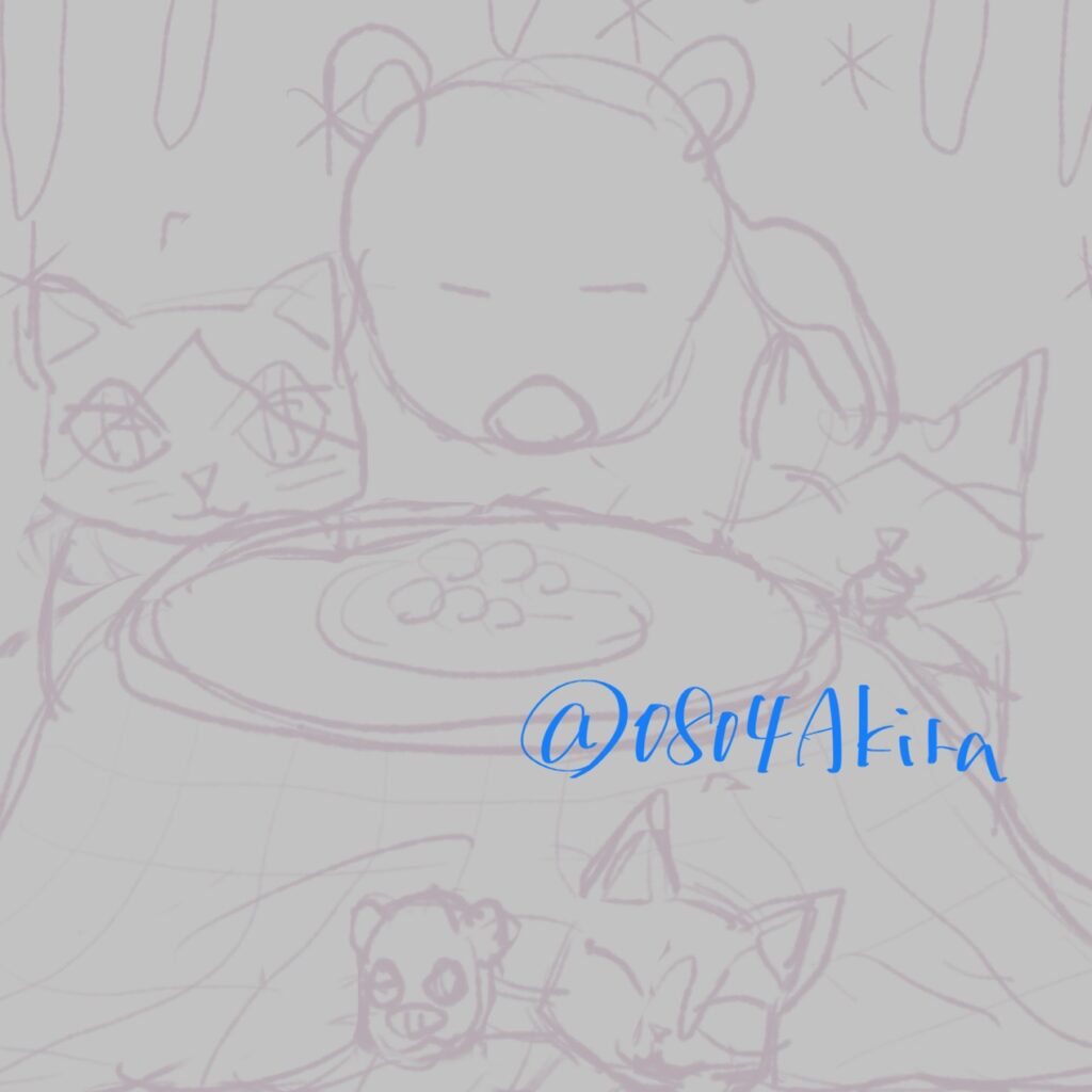 Since it’s the cold season, I wanted to draw everyone warming up together in a kotatsu, so I tucked them all inside.